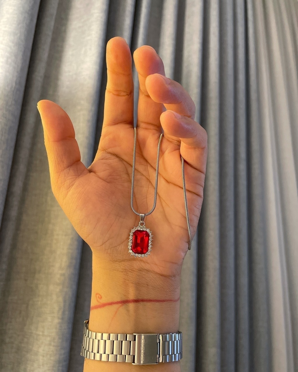 Forjada en acero inoxidable, cadena de 50cm de largo + dije de acero + zirconia.