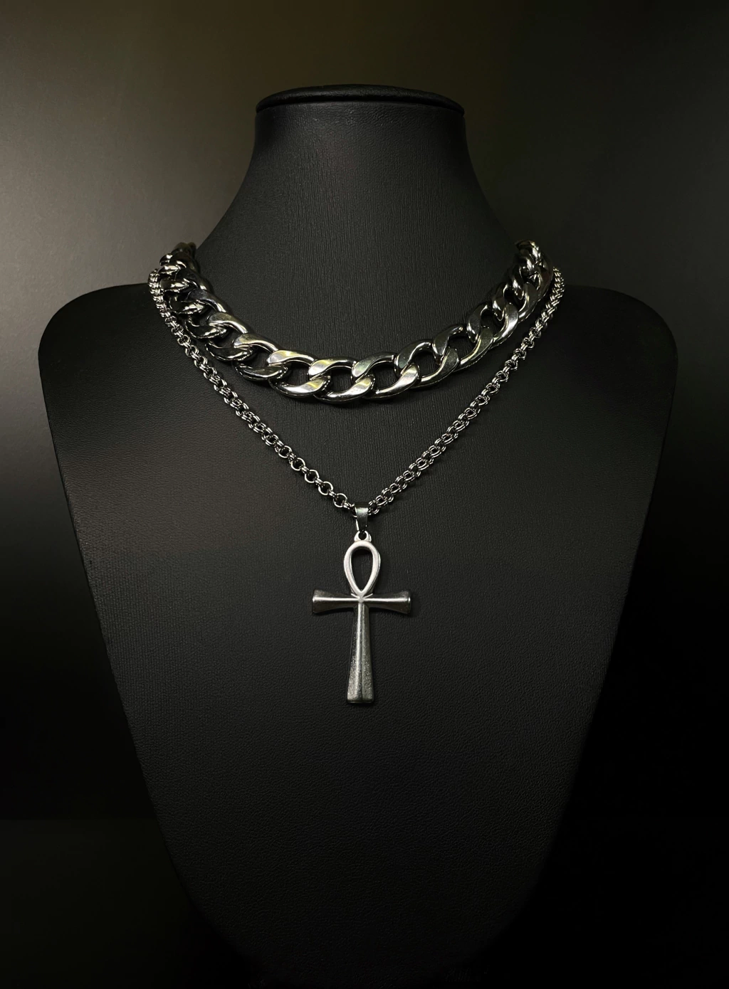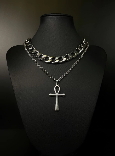 🔗 Este exclusivo set incluye 1 cadena de 45cm + 1 cadena de 50 cm & cruz Silver, que aporta un toque único a tu estilo.