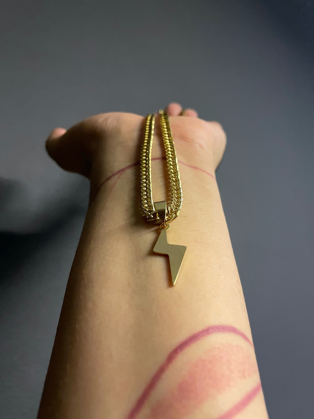 La cadena de acero inoxidable con baño de 18k, de 50 cm, es la pieza perfecta para realzar cualquier atuendo. Su diseño sofisticado y moderno se complementa a la un perfección con el dije de acero inoxidable también bañado en 18k.